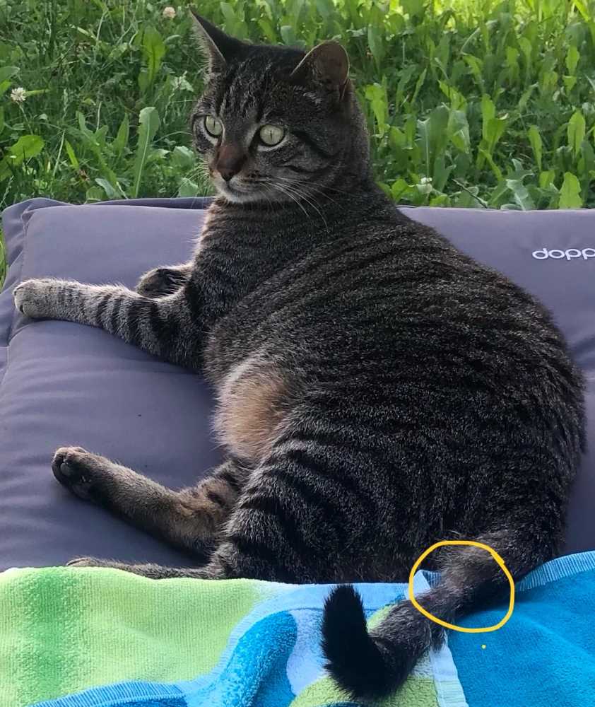 Kleine kahle Stelle mittig am Schwanz