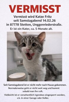 MORITZ 86871 Rammingen Suche beendet ![]() | NUDEL 86825 Bad Wörishofen Suche beendet ![]() | LEOLINCHEN 86825 Bad Wörishofen Suche beendet ![]() |
