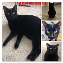 er ist schwarz, hat grüne Augen und hat ein kleines aufgeblähtes Bäuchlein. Er hat zwei ziemlich „kahle“ Stellen direkt am Kopf vor dem Ohr