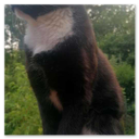Oberlippe kleiner weißer Fleck, weißes Lätzchen, Bauch eher weiß, weiße Schwanzspitze, Hintere Gelenke leicht geschwollen (Arthrose)