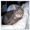 Ihr rechtes Auge ist krank die Popille ist größer wie Ihr gesundes linkes Auge, silbergrau an den Beinen leicht getiegert weßes Maulchen