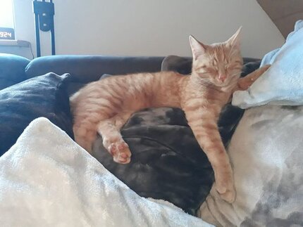 weißer Fleck zwischen Hals u. Brust,hell gestreifte Schwanz